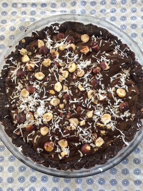 To make the base, blend the nuts until fine. Add the remaining ingredients and pulse until just coming together. Press into a pie dish. Refrigerate.